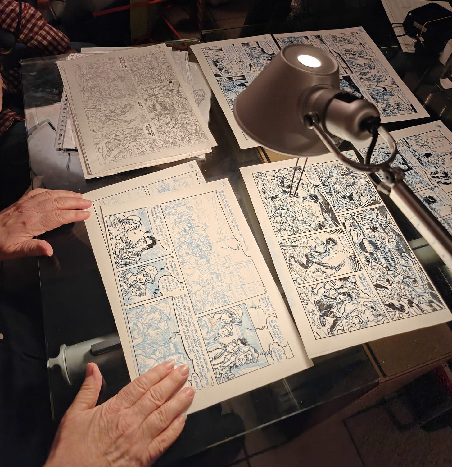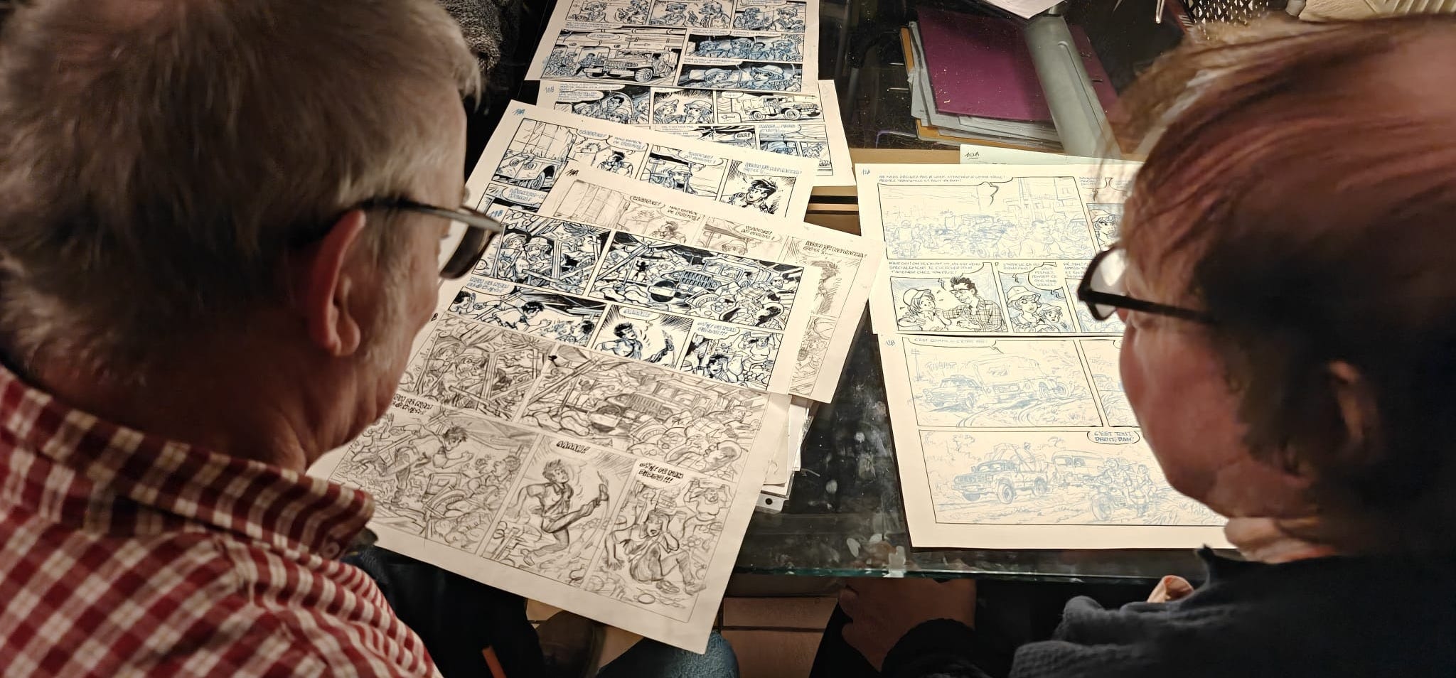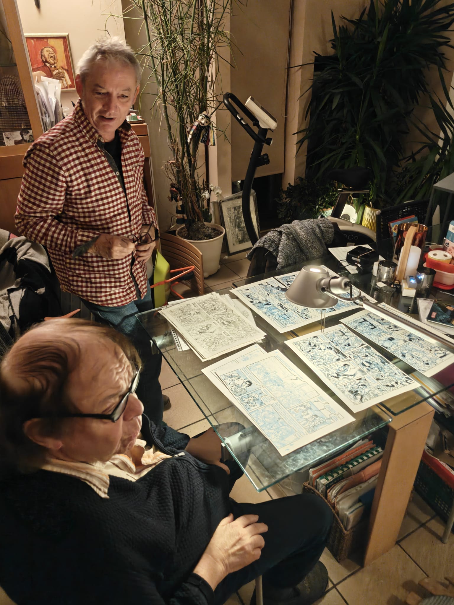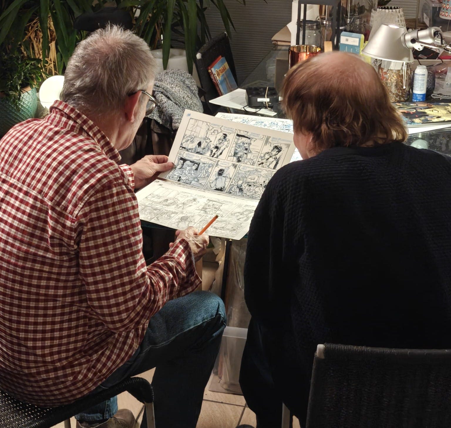 En exclu, j'ai pris des photos en secret (ou presque…) de Georges discutant avec François Walthéry à propos du prochain album de Natacha, Hôtesse de l'air !